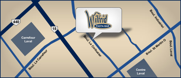 Laval 1974 Boul. Le Corbusier Laval • Québec • H7S 2K1 T. 450-973-9131 F. 450-973-8422 info@wilfridpastabar.com